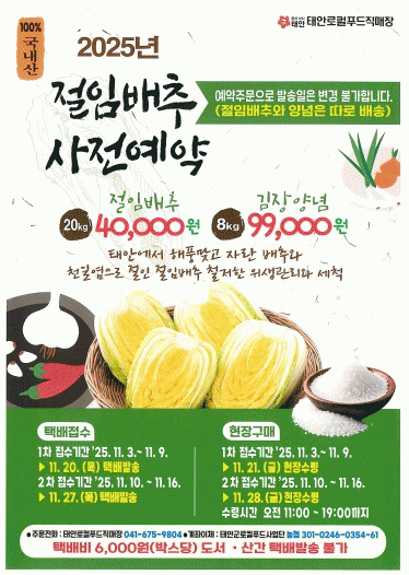 À̹ø Çà»ç¿¡¼´Â õÀÏ¿°À¸·Î ÀýÀÎ ÈÄ ±ú²ýÇÏ°Ô ¼¼Ã´ÇÑ Å¾Ȼê ÀýÀÓ¹èÃß 20kgÀ» 4¸¸ ¿ø¿¡, ±èÀå¾ç³ä 8kg(ÀýÀÓ¹èÃß 20kg ±âÁØ)¸¦ 9¸¸ 9õ ¿ø¿¡ °¢°¢ ÆÇ¸ÅÇÑ´Ù.