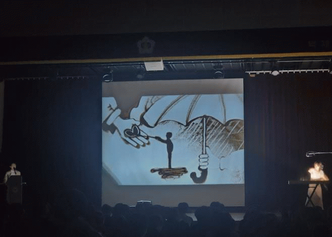 ¸ð·¡¸¦ ¸Å°³·Î ÇÑ ¿¹¼úÀû Ç¥Çö¿¡ ¿µ»ó°ú À½¾ÇÀÌ ¾î¿ì·¯Áø ¹«´ë´Â »ý¸íÀÇ ¼ÒÁßÇÔ°ú »ý¸í Á¸ÁßÀÇ Àǹ̸¦ ÇлýµéÀÌ ÀÚ¿¬½º·´°Ô ´À³¥ ¼ö ÀÖµµ·Ï ±¸¼ºµÆÀ¸¸ç, ƯÈ÷ °¨¼ºÀûÀÎ ¿¹¼ú ¸ÅüÀÎ »÷µå¾ÆÆ®¸¦ Ȱ¿ëÇØ ÇлýµéÀÇ Èï¹Ì¸¦ ³ôÀÌ°í ¸Þ½ÃÁö Àü´Þ·ÂÀ» ±Ø´ëÈÇß´Ù.