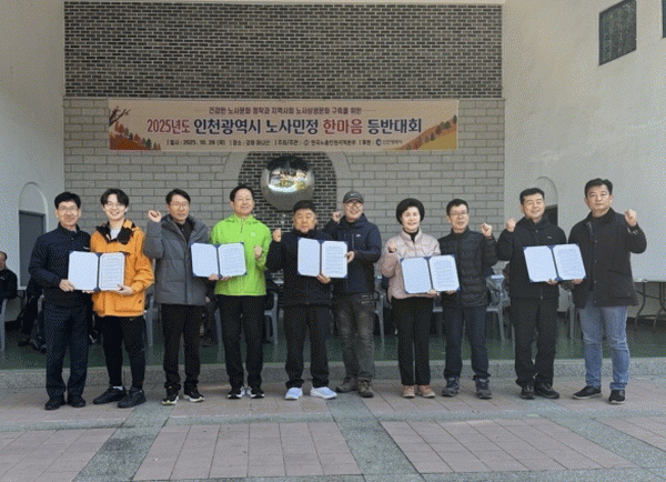 ÇÑÆí, À̹ø Çà»ç¿¡´Â ³ë¡¤»ç¡¤¹Î¡¤Á¤ ´ëÇ¥ 360¸íÀÌ Âü¼®ÇØ °øµ¿ ¼±¾ð¹®À» äÅÃÇϰí, ¸¶´Ï»ê µî¹ÝÀ¸·Î ÈÇÕÀ» ´ÙÁ³´Ù. ÁÖ¿ä ³»ºóÀ¸·Î´Â ÁߺÎÁö¹æ°í¿ë³ëµ¿Ã» ±èÀ±Å ûÀå, ÀÎõÁö¹æ³ëµ¿À§¿øÈ¸ ¹Î±æ¼ö À§¿øÀå, Çѱ¹³ëÃÑ ÀÎõÁö¿ªº»ºÎ ±è¿µ±¹ ÀÇÀå, ÀÎõ°æ¿µÀÚÃÑÇùȸ ±èÇѹ衤¿À¿øº¹ ºÎȸÀå, ±èÇö±Ô ÁߺΠ³ë»ç¹ßÀüÀç´Ü Áö»çÀå, ±èÁøÅ ÀÎõ½Ã °æÁ¦»ê¾÷º»ºÎÀå µîÀÌ ÀÚ¸®Çß´Ù.