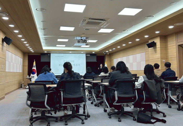 ¼Û¹Î¿µ ¿¬±¸¿øÀº °ø¹®¼ ¹× º¸µµÀÚ·á ÀÛ¼º ½Ã ¡®¿Ã¹Ù¸¥ ±Û¾²±â¡¯¸¦ ºñ·ÔÇØ ¾î·Á¿î ÇàÁ¤ ¿ë¾î ¹× ¿Ü±¹¾î¡¤ÇÑÀھ ÁÙÀ̰í, ¼ø¿ì¸®¸»À̳ª ¾Ë±â ½¬¿î Ç¥ÇöÀ¸·Î ¼øÈÇÒ ¼ö ÀÖµµ·Ï ±³À°À» ÁøÇàÇß´Ù.