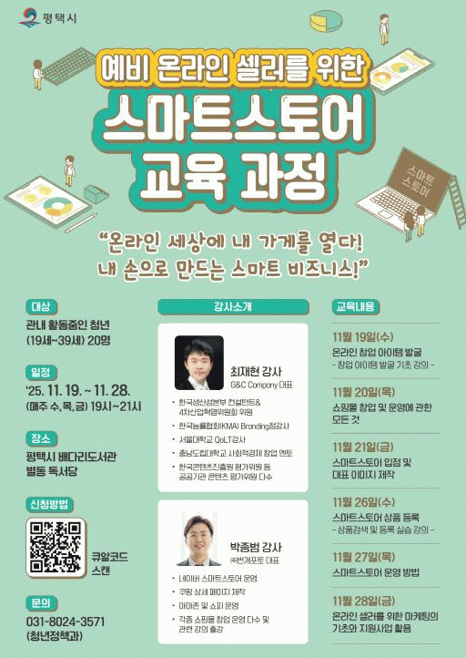 ±³À° °úÁ¤Àº ÃÑ 6ÀÏ µ¿¾È ÁøÇàµÇ¸ç, °¢ ºÐ¾ß Àü¹®°¡µéÀÌ °»ç·Î ³ª¼ ¡â¿Â¶óÀΠâ¾÷ ¾ÆÀÌÅÛ ¹ß±¼ ¡â¼îÇθô ¹× ½º¸¶Æ® ¸ÅÀå ¿î¿µ ¡â¿Â¶óÀÎ ÆÇ¸ÅÀÚ¸¦ À§ÇÑ ¸¶ÄÉÆÃ È°¿ë ±³À° µîÀ» ½Éµµ ÀÖ°Ô ´Ù·ê ¿¹Á¤ÀÌ´Ù.