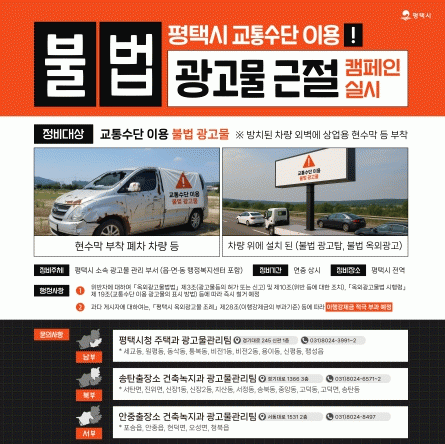 ÆòÅýà ÁÖÅðú °ü°èÀÚ´Â ¡°±³Åë¼ö´ÜÀ» ÀÌ¿ëÇÑ ºÒ¹ý ±¤°í¹°Àº µµ½Ã¹Ì°üÀ» ÀúÇØÇÏ°í ½Ã¹ÎÀÇ º¸Çà ¾ÈÀüÀ» À§ÇùÇÏ´Â º¯Ä¢ÀûÀÎ È«º¸ ¼ö´Ü¡±À̶ó¸ç, ¡°½Ã¹Î ¿©·¯ºÐ²²¼µµ ÀÚ¹ßÀûÀÎ ±¤°í¹° Á¤ºñ¿¡ µ¿ÂüÇØ ±ú²ýÇÏ°í ¾ÈÀüÇÑ µµ½Ã ȯ°æ Á¶¼º¿¡ ÇùÁ¶ÇØÁÖ½Ã±æ ¹Ù¶õ´Ù¡±¶ó°í ´çºÎÇß´Ù.