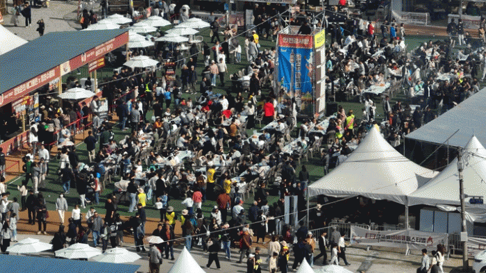 ÃàÁ¦ÀåÀ» ã´Â »ç¶÷µéÀÇ ¹ÝÀÀµµ ¸» ±×´ë·Î ´ë¹ÚÀ» ¿ÜÃÆ´Ù. ÀÏ´Ü ±º ´ÜÀ§ Çà»ç¿¡ ÀÌ·¸°Ô »ç¶÷ÀÌ ¸¹´Ù´Â °Í¿¡ ³î¶ó°í Çà»ç ±Ô¸ð´Â ¹°·Ð ´Ù¾çÇÑ º¼°Å¸®¿Í ¸Ô°Å¸®¿¡ ´Ù½ÃÇѹø °¨Åº»ç¸¦ ¿¬¹ßÇϱâ ÀϾ¥¿´´Ù.