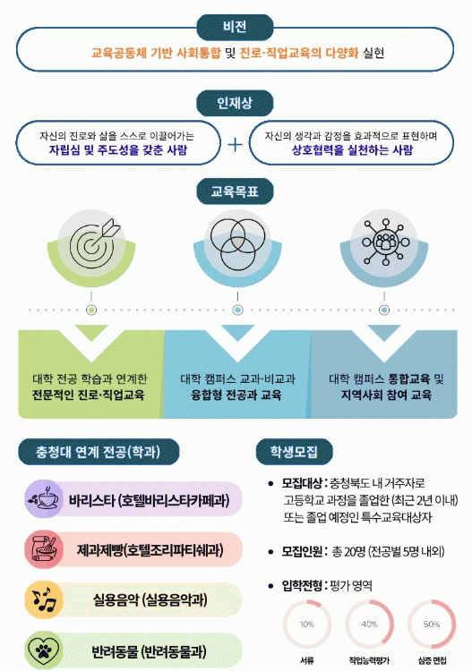 ÃæºÏ±³À°Ã»Àº Ä·ÆÛ½º À¶ÇÕÇü Àü°ø°ú ¿î¿µÀ» À§ÇØ Áö³ 9¿ù ÃæÃ»´ëÇб³¿Í ¾÷¹«Çù¾àÀ» ½ÃÀÛÀ¸·Î 10¿ù ½ÅÀÔ»ý ¸ðÁý°ú ¼±¹ß ÀüÇüÀ» ¿Ï·áÇØ 2026Çг⵵ºÎÅÍ º»°ÝÀûÀÎ ¿î¿µÀ» ÁغñÇϰí ÀÖ´Ù.
