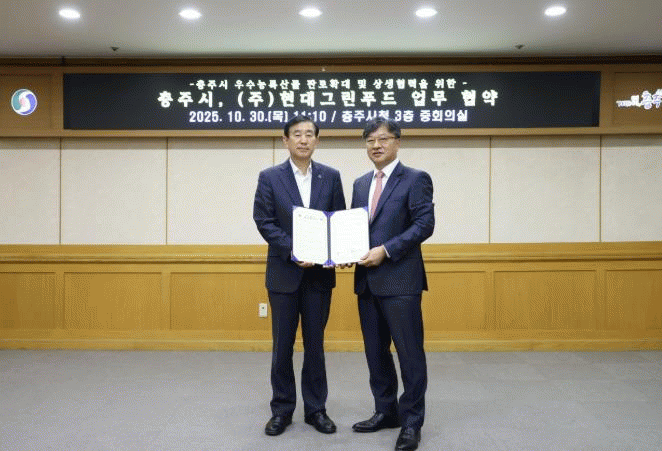 ½Ã´Â 30ÀÏ ÃæÁÖ½Ãû 3Ãþ ÁßȸÀǽǿ¡¼ Çö´ë¹éÈÁ¡±×·ì °è¿ Á¾ÇÕ½Äǰ±â¾÷ ¡®Çö´ë±×¸°Çªµå¡¯¿Í ¾÷¹«Çù¾à(MOU)À» ü°áÇß´Ù°í ¹àÇû´Ù.