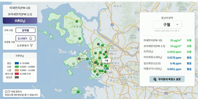 ¿ÀÁ¸ÁÖÀǺ¸´Â 1½Ã°£ Æò±Õ ³óµµ°¡ 0.12 ppm ÀÌ»óÀÏ ¶§ ¹ß·ÉµÇ¸ç, ÀÎõ½Ã´Â ¿¹¡¤°æº¸±Ç¿ªÀ» µ¿³²ºÎ, ¼ºÎ, ¿µÁ¾¡¤¿µÈï, °È±Ç¿ªÀ¸·Î ±¸ºÐÇØ ¿î¿µ ÁßÀÌ´Ù.