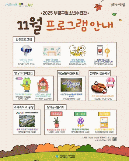 À̹ø ÀÎÁõÁ¦ ÇÁ·Î±×·¥Àº ¡ãÀΰøÁö´É ½Ã´ë¸¦ »ì¾Æ°¡´Â û¼Ò³âÀ» À§ÇÑ ¡®AI À±¸®¡¯(11¿ù 1ÀÏ) ¡ã¸ñ°ø ÀÛǰ Ȱµ¿ÀÎ ¡®¸ñ°ø°í¼ö°¡ µÇ¾îº¸ÀÚ¡¯(11¿ù 8ÀÏ) ¡ã¹Ý·Áµ¿¹° ¼öÁ¦ °£½Ä ¸¸µé±â ¡®¸ÀÀÖ°³ ¸¸µé¾îÁÙ°³¡¯(11¿ù 8ÀÏ) ¡ãµðÁöÅÐ °Å¸®µÎ±â(µðÅ彺) °ø¿¹ Ȱµ¿ ¡®µðÁöÅÐ OFF, ¸¶À½ ON¡¯(11¿ù 29ÀÏ) µîÀÌ´Ù.