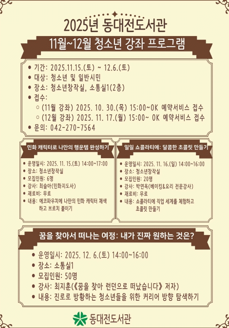 11¿ù °Á´ 10¿ù 30ÀÏ ¿ÀÈÄ 3½ÃºÎÅÍ, 12¿ù ÀÛ°¡ÃÊû °¿¬È¸´Â 11¿ù 17ÀÏ ¿ÀÈÄ 3½ÃºÎÅÍ ´ëÀü½Ã OK¿¹¾à¼ºñ½º ¿Â¶óÀÎÀ» ÅëÇØ Á¢¼öÇÒ ¼ö ÀÖ´Ù.