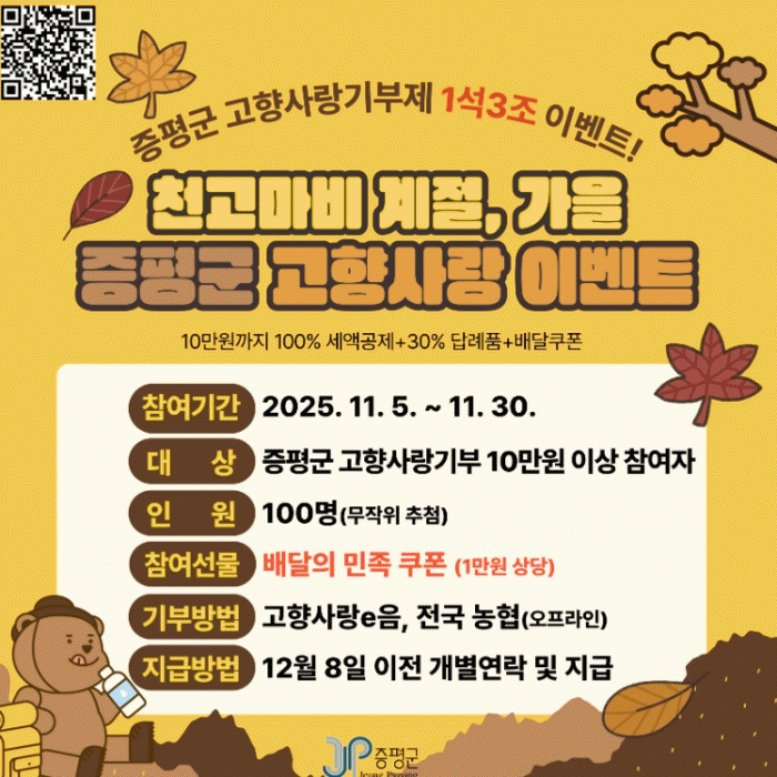 À̹ø À̺¥Æ®´Â ÇØ´ç ±â°£ ÁõÆò±º¿¡ 10¸¸ ¿ø ÀÌ»ó ±âºÎÇÑ ±âºÎÀÚ °¡¿îµ¥ 100¸íÀ» ÃßÃ·ÇØ 1¸¸¿ø »ó´çÀÇ ¹è´Þ ÄíÆùÀ» Á¦°øÇÏ´Â Çà»ç´Ù.