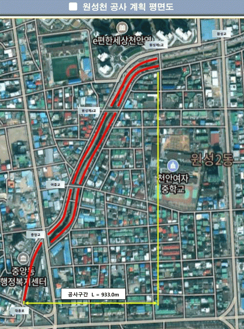 ½Ã´Â ¿ø¼ºµ¿ ÀÏ¿ø¿¡¼ ÃßÁø ÁßÀÎ ¿ø¼ºµ¿(2´Ü°è) Çϼö°ü·Î ¹× Â÷Áý°ü·Î Á¤ºñ °ø»çÀÇ ÀÏȯÀ¸·Î ¿ø¼ºÃµ »êÃ¥·Î ¾à 1km ±¸°£(´ëÈï·Î~¿ø¼ºÁ¦1±³)¿¡ °ÉÃÄ Çϼö°ü·Î¸¦ »õ·Î Á¤ºñÇÑ´Ù.