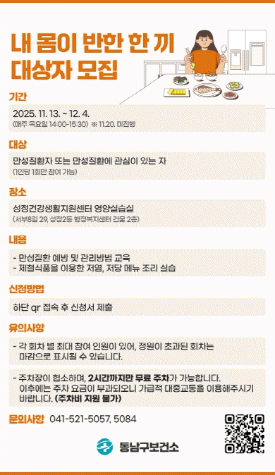 Âü¿© ½ÅûÀº ¿À´Â 6ÀÏ ¿ÀÈÄ 6½Ã±îÁö µ¿³²±¸º¸°Ç¼Ò ´©¸®Áý Á¤º¸¹«´Ì(QRÄÚµå)¸¦ ÅëÇØ °¡´ÉÇÏ´Ù. ¹®ÀÇ»çÇ×Àº µ¿³²±¸º¸°Ç¼Ò °Ç°»ýȰÆÀ·Î ÇÏ¸é µÈ´Ù.