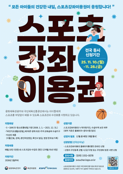 ¡ã½ºÆ÷Ã÷°ÁÂÀÌ¿ë±Ç Áö¿ø ´ë»óÀº ±âÃÊ»ýȰ¼ö±Þ°¡±¸, Â÷»óÀ§°èÃþ, ¹ýÁ¤ ÇѺθ𠰡Á·ÀÇ 5~18¼¼ À¯¡¤Ã»¼Ò³â(2008~2021³â Ãâ»ýÀÚ)À̸ç, ¡ãÀå¾ÖÀνºÆ÷Ã÷°ÁÂÀÌ¿ë±Ç Áö¿ø ´ë»óÀº 5~69¼¼ µî·Ï Àå¾ÖÀÎ(1957~2021³â Ãâ»ýÀÚ)ÀÌ´Ù.