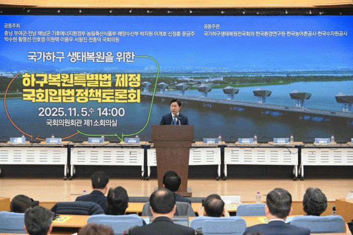 À̹ø Åä·Ðȸ´Â Ãæ³² ºÎ¿©±º°ú Àü³² ÇØ³²±ºÀ» ºñ·ÔÇØ ´Ù¼öÀÇ ±¹È¸ÀÇ¿ø °ú ȯ°æºÎ¡¤³ó¸²Ãà»ê½ÄǰºÎ¡¤Çؾç¼ö»êºÎ°¡ °øµ¿ ÁÖÃÖÇϰí, ±¹°¡Çϱ¸»ýź¹¿øÀü±¹È¸ÀÇ µîÀÌ °øµ¿ ÁÖ°üÇÏ´Â ÀÚ¸®·Î, ÀÌÀç¸í Á¤ºÎ°¡ ±¹Á¤°úÁ¦·Î äÅÃÇÑ ±¹°¡Çϱ¸ º¹¿øÀ» ¹ý¡¤Á¦µµÀûÀ¸·Î µÞ¹ÞħÇϱâ À§ÇØ ¸¶·ÃÇß´Ù.