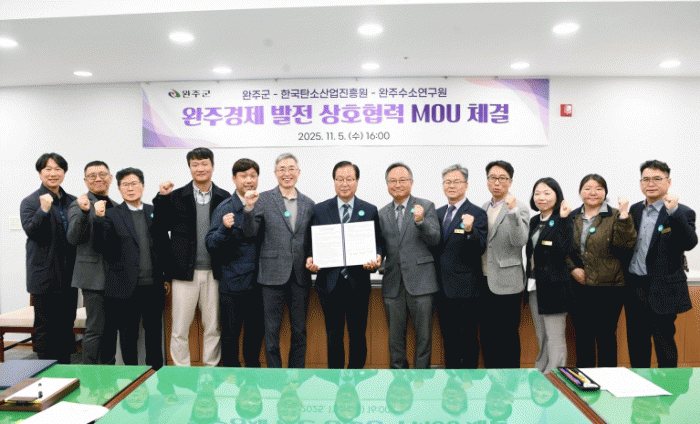 5ÀÏ ¿ÏÁÖ±ºÀº ¿ÏÁÖ±ºÃ»¿¡¼ À¯ÈñÅ ¿ÏÁÖ±º¼ö, À¯°æ¹Î Çѱ¹Åº¼Ò»ê¾÷ÁøÈï¿øÀå ´ëÇà, ÀÌÈ«±â ¿ÏÁÖ¼ö¼Ò¿¬±¸¿øÀå µî °ü°èÀÚ 20¿© ¸íÀÌ Âü¼®ÇÑ °¡¿îµ¥ ¡®Åº¼Ò¡¤¼ö¼Ò À¶¡¤º¹ÇÕ»ê¾÷ »ýŰè Á¶¼º ¹× Áö¿ª±â¾÷ ±â¼úÁö¿ø ¾÷¹«Çù¾à(MOU)¡¯À» ü°áÇß´Ù.