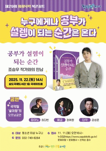 À̹ø Çà»ç´Â ±¹¾ÇÆÀ ¡®¼³À̶û¡¯ÀÇ Ç»Àü ±¹¾Ç °ø¿¬À» ½ÃÀÛÀ¸·Î ¡®°øºÎ°¡ ¼³·½ÀÌ µÇ´Â ¼ø°£¡¯ÀÇ ÀúÀÚ Á¶½Â¿ì ÀÛ°¡¸¦ ÃÊÃ»ÇØ ¡®°øºÎ¶ó´Â º®À» ³Ñ¾î¼´Â ¸¶À½ÀÇ Èû¡¯À» ÁÖÁ¦·Î ¿ë±â¿Í ¼ºÀåÀÇ ¸Þ½ÃÁö¸¦ ÀüÇÒ ¿¹Á¤ÀÌ´Ù.