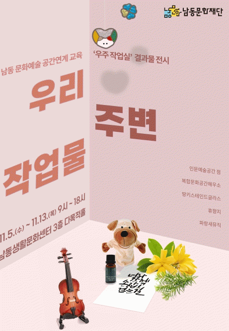 ¡®¿ìÁÖ ÀÛ¾÷½Ç¡¯Àº ¸Å³â ³²µ¿±¸ °÷°÷¿¡ ÀÖ´Â µ¶¸³ ¹®È¿¹¼ú °ø°£À» ¹ß±¼Çϰí, ÇØ´ç °ø°£°ú ¿¬°èÇØ ÁֹεéÀÌ Á÷Á¢ Âü¿©ÇÏ´Â ¹®È¿¹¼ú üÇè ÇÁ·Î±×·¥À» Áö¿øÇÏ´Â »ç¾÷ÀÌ´Ù.