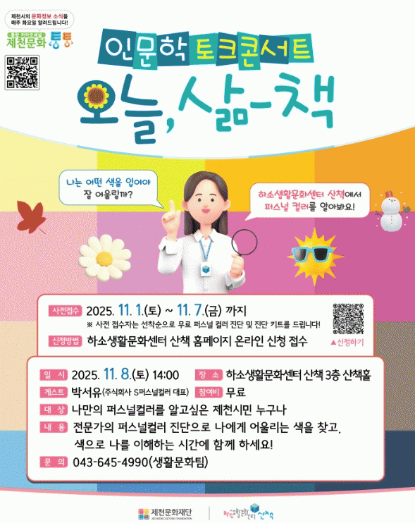 À̹ø ÇÁ·Î±×·¥Àº ³ª¸¸ÀÇ ÆÛ½º³ÎÄ÷¯¸¦ ¾Ë°í ½ÍÀº Á¦Ãµ½Ã¹Î ´©±¸³ª ¹«·á·Î Âü¿©ÇÒ ¼ö ÀÖÀ¸¸ç, ÇϼһýȰ¹®È¼¾ÅÍ »êÃ¥ ´©¸®ÁýÀ» ÅëÇØ »çÀü Á¢¼ö°¡ °¡´ÉÇÏ´Ù.