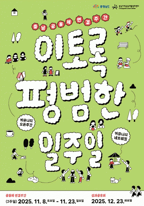 À̹ø ÁÖ°£Àº ¡®ÀÌÅä·Ï Æò¹üÇÑ ÀÏÁÖÀÏ¡¯À̶ó´Â ÁÖÁ¦·Î, Ãæ³² °÷°÷ÀÇ ¸¶À»¡¤´Üü¡¤°øµ¿Ã¼°¡ ÀÏ»ó ¼Ó¿¡¼ ¿¾î°¡´Â Ä¿¹Â´ÏƼ ÁÖ°£ ÇÁ·Î±×·¥ÀÌ´Ù.