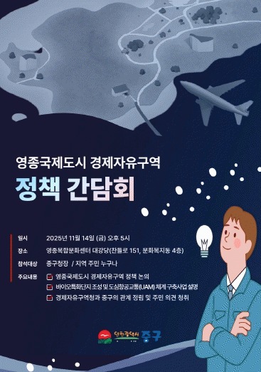 ÀÎõ½Ã Áß±¸´Â ¿À´Â 14ÀÏ ¿ÀÈÄ 5½ÃºÎÅÍ ¿µÁ¾º¹ÇÕ¹®È¼¾ÅÍ ´ë°´ç¿¡¼ ¡®¿µÁ¾±¹Á¦µµ½Ã °æÁ¦ÀÚÀ¯±¸¿ª Á¤Ã¥°£´ãȸ¡¯¸¦ °³ÃÖÇÑ´Ù.