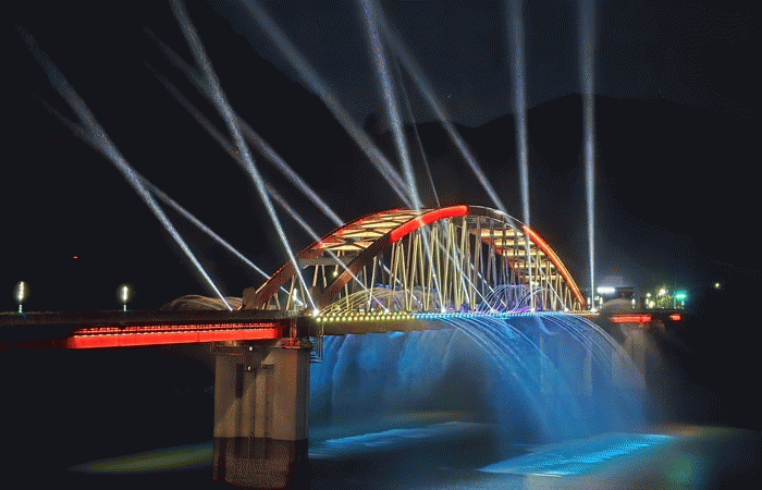 Áö³ 9¿ù 19ÀÏ ÁذøµÈ °í¼ö´ë±³ °æ°üºÐ¼ö´Â ´Ü¾ç°À» ¹è°æÀ¸·Î À½¾Ç°ú Á¶¸íÀÌ ¾î¿ì·¯Áø ±³·®Çü À½¾ÇºÐ¼ö(±æÀÌ 280m, 2¸é 140m)·Î, ´Ù¾çÇÑ ¹°Áٱ⠿¬Ãâ°ú ºûÀÇ Á¶È·Î °ü±¤°´µéÀÇ Å« È£ÀÀÀ» ¾ò°í ÀÖ´Ù.