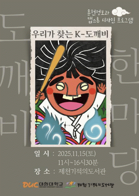 ´ë¿ø´ëÇб³ ¹®ÇåÁ¤º¸°ú ÇлýµéÀº µµ±úºñ ¾Ë¾Æº¸±â ÆÐ³Î Àü½Ã ¹× ¼³¸íÀ» ºñ·ÔÇÏ¿© ¡ãµµ±úºñ ±×¸®±â ¡ãÆÇÈ Âï±â ¡ãÅ» ¸¸µé±â ¡ã¸¶±×³×ƽ ¸¸µé±â üÇè Äڳʸ¦ ¿î¿µÇÑ´Ù. ¶ÇÇÑ Á¦Ãµ±âÀûÀǵµ¼°ü È£¶ûÀÌ´ã¹î´ë µ¿¾Æ¸®´Â ¾î¸°À̵鿡°Ô ¸Þ¹Ð¹ü¹÷À» ¸¸µé¾î ³ª´²ÁÖ°í ±×¸²Ã¥ 'µµ±úºñ°¡ ÁØ ¼±¹°' ±×¸² ¿¬±ØÀ» °ø¿¬ÇÑ´Ù.
