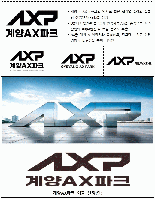 ¡®°è¾çAXÆÄÅ©¡¯´Â °è¾ç + AX + ÆÄÅ©(Park)ÀÇ ¾àÀÚ·Î µðÁöÅÐ Àüȯ(DX)À» ³Ñ¾î ÀΰøÁö´É(AI)À» Áß½ÉÀ¸·Î Áö¿ª»ê¾÷ÀÇ AX(AIÀüȯ)¸¦ Çٽɿë¾î·Î ÃßÃâÇϰí AX¸¦ °è¾çÅ×Å©³ë¹ë¸® À̹ÌÁö¿Í À¶ÇÕÇϰí, ÆÄÅ©(Park)¶ó´Â ´Ü¾î¸¦ ´õÇØ ÷´Ü»ê¾÷ÀÌ À¶ÇյǴ ģȯ°æ »ê¾÷´ÜÁöÀÇ Àǹ̸¦ ´ã¾Ò´Ù.