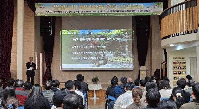 À̳¯ °¿¬¿¡¼´Â °È£Ã¶ Àü °æ³²°úÇбâ¼ú´ë Á¶°æÇаú ±³¼ö°¡ ¡®¼¼°èµµ½ÃÀÇ ³ì»öȯ°æ°ú Á¤¿ø»êÃ¥¡¯À» ÁÖÁ¦·Î ¼¼°è ¿©·¯ µµ½ÃÀÇ Á¤¿øÁ¶¼º°ú ¿î¿µ»ç·Ê, ½Ã¹ÎÂü¿© Áß½ÉÀÇ Á¤¿ø¹®È È®»ê¹æ¾ÈÀ» ¼Ò°³Çß´Ù.