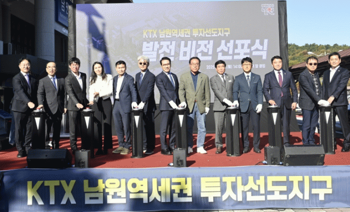 ³²¿ø½Ã´Â 10ÀÏ KTX ³²¿ø¿ª ±¤Àå¿¡¼ ¡®KTX ³²¿ø¿ª¼¼±Ç ÅõÀÚ¼±µµÁö±¸ ¹ßÀü ºñÀü¼±Æ÷½Ä¡¯À» °³ÃÖÇÏ°í ³²¿øÀÇ ¹Ì·¡ ¼ºÀå °ÅÁ¡µµ½Ã Á¶¼ºÀ» À§ÇÑ º»°Ý ÃßÁøÀ» ¼±¾ðÇß´Ù. À̹ø Çà»ç´Â ¿ª¼¼±Ç °³¹ß ¹æÇâÀ» ½Ã¹Î°ú °øÀ¯Çϰí Áö¿ª °ø°¨´ë¸¦ È®»êÇϱâ À§ÇØ ¸¶·ÃµÆ´Ù.