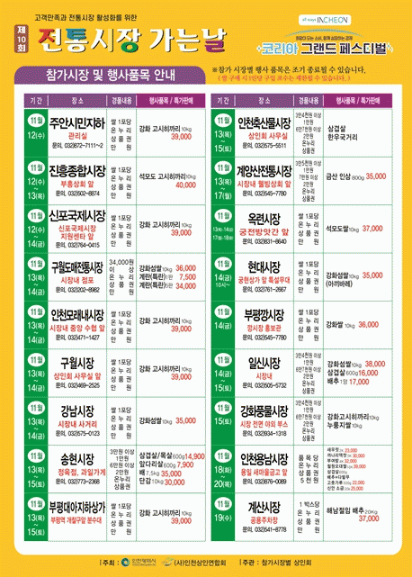 À̹ø Çà»ç´Â (»ç)ÀÎõ»óÀο¬ÇÕȸ(ȸÀå ¼Àå¿)°¡ ÁÖÃÖÇϰí ÀÎõ±¤¿ª½Ã(½ÃÀå À¯Á¤º¹)°¡ ÈÄ¿øÇÏ¸ç ¡®ÀÎõ ¼¼ÀÏÆä½ºÅ¸¡¯ ½Ã±â¿¡ ¸ÂÃç °ü³» 18°³ ÀüÅë½ÃÀå¿¡¼ ÁøÇàµÈ´Ù.