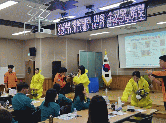 ÈÆ·ÃÀº »ý¹°Å×·¯ ´ëÀÀü°è Àü¹Ý¿¡ ´ëÇÑ ±³À°°ú ÇÔ²² °³Àκ¸È£±¸ Âø¡¤Å»ÀÇ, ´ÙÁߎÁöµµ±¸ Ȱ¿ë, °Ëü Æ÷Àå ¹× ÀÌ¼Û µî ½ÇÁ¦ »óȲ¿¡¼ ÇÊ¿äÇÑ ÇöÀå ½Ç½ÀÀ» º´ÇàÇÏ¿© ´ëÀÀ ¿ª·®À» °ÈÇÏ´Â µ¥ ÁßÁ¡À» µÎ¾ú´Ù. ¶ÇÇÑ °ü°è±â°ü °£ ¿ªÇÒ ºÐ´ã°ú °øÁ¶Ã¼°è¸¦ Á¡°ËÇÏ¸ç ºñ»ó»óȲ ¹ß»ý ½Ã ½Å¼ÓÇÏ°í ±ä¹ÐÇÑ Çù·ÂÀÌ ÀÌ·ïÁú ¼ö ÀÖµµ·Ï ´ëºñÇß´Ù.