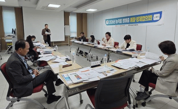 À̹ø ÇùÀÇȸ¿¡´Â ³ó¾÷±â¼ú¼¾ÅÍ ¼ÒÀåÀ» ºñ·ÔÇÑ ´ç¿¬Á÷ ½ÉÀÇÀ§¿ø 4¸í°ú °æ±âµµ³ó¾÷±â¼ú¿øÀÇ º´¡¤ÇØÃæ ´ã´ç ¿¬±¸»ç ¹× °ü³» ³ó¾÷ÀÎ µî ÃÑ 9¸íÀÌ Âü¼®ÇÑ °¡¿îµ¥, »çÀü¿¡ Á¢¼öµÈ 26Á¾ÀÇ ¾àÁ¦¸¦ ½ÉÀÇÇß´Ù.