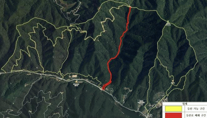 Àӽà Æó¼â ±¸°£Àº ÃÑ ¾à 2.06km·Î, ¹°¾ÈÀ̰ñ ÀÔ±¸¿¡¼ ¼ÛÇÑÀç ÀÓµµ ¹æÇâÀ¸·Î À̾îÁö´Â µî»ê·Î ±¸°£ÀÌ´Ù. ÀÌ ±¸°£Àº ³ëÈÄµÈ ·ÎÇÁ³°£°ú ºÎ½ÄµÈ ¸ñ°è´Ü µîÀ¸·Î Ž¹æ°´ ¾ÈÀü»ç°í À§ÇèÀÌ ³ô´Ù.