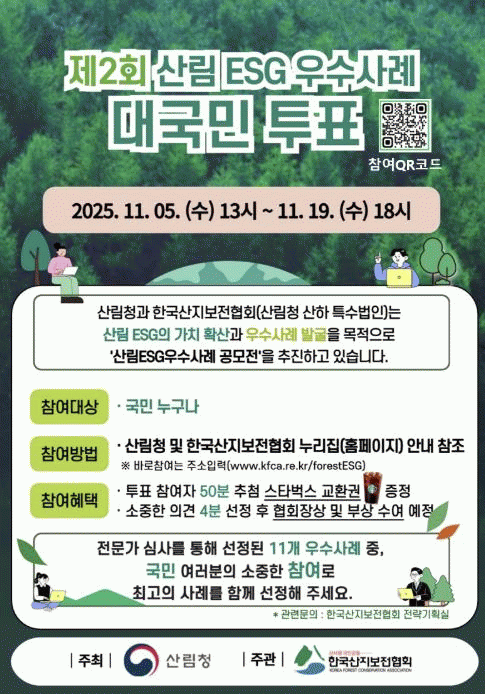 À̹ø °ø¸ðÀüÀÇ ´ë±¹¹Î ÅõÇ¥´Â ¿À´Â 19ÀÏ 18½Ã±îÁö ¿Â¶óÀÎÀ¸·Î ÁøÇàµÇ¸ç, Çѱ¹»êÁöº¸ÀüÇùȸ ȨÆäÀÌÁö ³» ¹è³Ê¸¦ ÅëÇØ Âü¿©ÇÒ ¼ö ÀÖ´Ù.