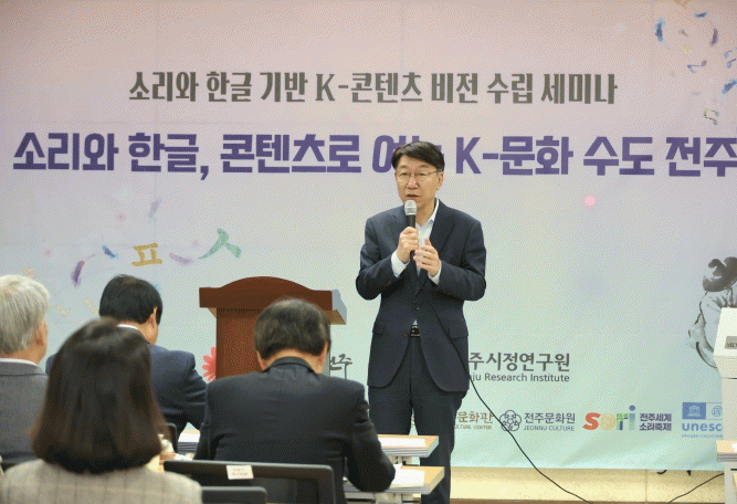 ÀüÁÖ½Ã¿Í ÀüÁÖ½ÃÁ¤¿¬±¸¿øÀº 13ÀÏ ¿ÏÆÇº»¹®È°ü ÀÎû¿¡¼ ¡®¼Ò¸®¿Í ÇÑ±Û ±â¹Ý K-ÄÜÅÙÃ÷ ºñÀü ¼ö¸³À» À§ÇÑ ¼¼¹Ì³ª¡¯¸¦ °³ÃÖÇß´Ù.