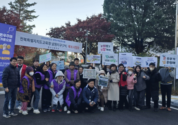 Çѱ¹¿©¼º³ó¾÷ÀÎ Àå¼ö±º¿¬ÇÕȸ(ȸÀå ¾È¿Á¼ø) ȸ¿ø 10¿© ¸íÀº À̳¯ Àå¼ö°í ½ÃÇèÀåÀ» ¹æ¹®ÇØ µû¶æÇÑ À½·á¿Í ÇÖÆÑÀ» Á÷Á¢ Àü´ÞÇÏ¸ç ¼öÇè»ýµé¿¡°Ô ÈûÀÌ µÇ´Â ÀÀ¿øÀÇ ¸Þ½ÃÁö¸¦ °Ç³Þ´Ù.