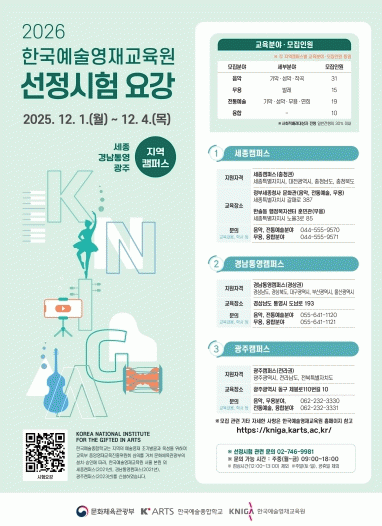 À̹ø ¸ðÁý¿¡´Â ÀϹÝÀüÇüÀ¸·Î ¡ãÀ½¾Ç(±â¾Ç¡¤¼º¾Ç¡¤ÀÛ°î) 31¸í ¡ã¹«¿ë(¹ß·¹) 15¸í ¡ãÀüÅ뿹¼ú(±â¾Ç¡¤¼º¾Ç¡¤¹«¿ë¡¤¿¬Èñ) 19¸í ¡ãÀ¶ÇÕ(¿µ»ó¡¤¸ÖƼ¹Ìµð¾î) 10¸í µî 75¸íÀ» ¼±¹ßÇϸç, »çȸÀû¹è·Á ´ë»óÀÚ ÀüÇüÀº ÀϹÝÀüÇüÀÇ 30% À̳»¿¡¼ º°µµ·Î ¸ðÁýÇÑ´Ù.