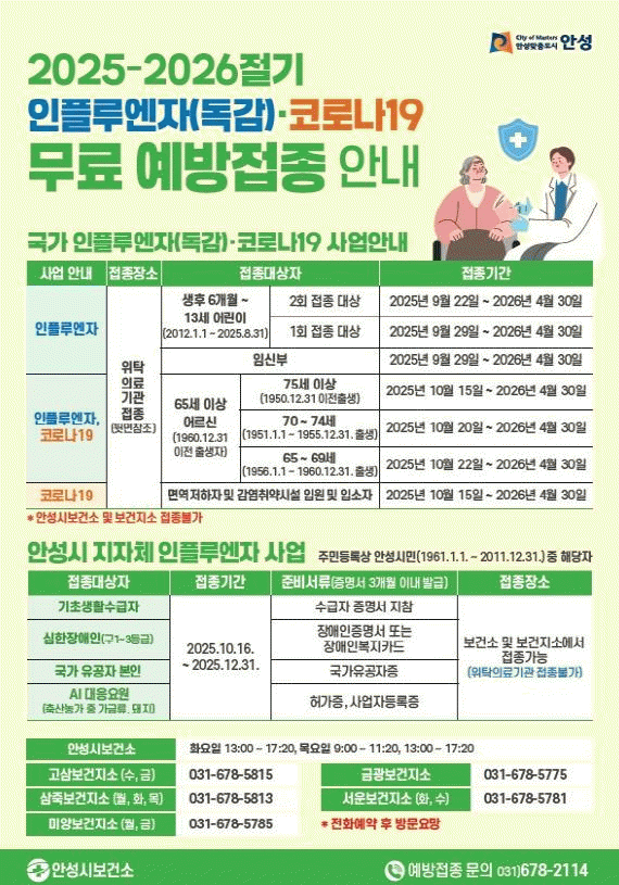 ½Ã´Â Áö³ 9¿ù 22ÀϺÎÅÍ ¡®2025~2026Àý±â ÀÎÇ÷翣ÀÚ ±¹°¡¿¹¹æÁ¢Á¾ »ç¾÷¡¯À» ½ÃÇà ÁßÀ̸ç, Á¢Á¾ ´ë»óÀº ¡ã6°³¿ù~13¼¼ ÀÌÇÏ ¾î¸°ÀÌ ¡ãÀӽźΠ¡ã65¼¼ ÀÌ»ó ¾î¸£½ÅÀÌ´Ù. ƯÈ÷ ¾î¸£½ÅÀº ÀÎÇ÷翣ÀÚ¿Í Äڷγª19 ¹é½ÅÀ» ÇÔ²² Á¢Á¾ÇÒ °ÍÀ» ±ÇÀåÇÑ´Ù.
