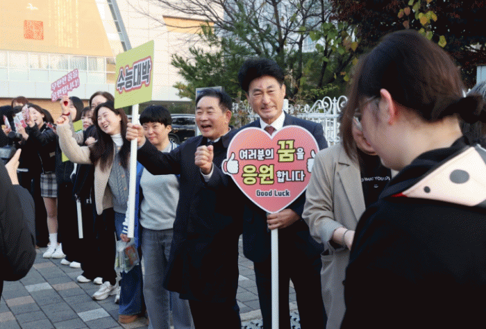 ¶ÇÇÑ Ãß¿î ³¯¾¾ ¼Ó¿¡¼ ÀÀ¿ø¿¡ ³ª¼± Çкθð¿Í Çб³ °ü°èÀڵ鿡°Ôµµ ¡°¼öÇè»ýµéÀÌ Æí¾ÈÇÏ°Ô ½ÃÇèÀ» Ä¡¸¦ ¼ö ÀÖµµ·Ï ÇÔ²² ÇØÁּż °¨»çÇÏ´Ù¡±¸ç µû¶æÇÑ Àλ縦 ÀüÇß´Ù.