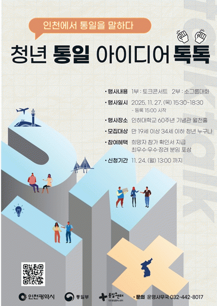 ¿À´Â 11¿ù 27ÀÏ ÀÎÇÏ´ëÇб³ 60ÁÖ³â±â³ä°ü¿¡¼ û³â »çȸÀû ´ëÈ ÇÁ·Î±×·¥ ¡®Ã»³â ÅëÀÏ ¾ÆÀ̵ð¾î ÅåÅ塯ÀÌ °³ÃֵȴÙ.