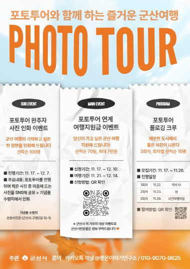 °¡Àå ´«±æÀ» ²ô´Â ÇÁ·Î±×·¥ÀÎ ¡®Æ÷ÅäÅõ¾î ¿¬°è ¿©Çà Áö¿ø±Ý Áö±Þ¡¯Àº ±º»êÀ» ¿©ÇàÇÏ´Â °ü±¤°´¿¡°Ô ¿©Çà°æºñÀÇ ÀϺθ¦ Áö¿øÇÏ´Â ÇÁ·Î±×·¥À¸·Î, Âü¿©¸¦ Èñ¸ÁÇÏ´Â °ü±¤°´Àº Æ÷ÅäÅõ¾î ÄÚ½º Áß ¿©ÇàÁö 10°÷À» ¼±Á¤ÇØ »çȸ°ü°è¸Á(SNS)¿¡ °øÀ¯ÇÏ°í ´©¸®Áý¸¦ ÅëÇØ ½ÅûÇÏ¸é µÈ´Ù.