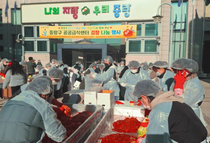 Âü°¡ÀÚµéÀº ±«»ê¿¡¼ »ý»êµÈ ½Å¼±ÇÑ Áö¿ª ³ó»ê¹°À» Ȱ¿ëÇØ ±èÀå±èÄ¡¸¦ ÇÔ²² ´ã°¬À¸¸ç, ¿Ï¼ºµÈ ±èÄ¡(10kg 100¹Ú½º)´Â Áß¶û±¸ ³» ¾î¸°ÀÌ Ãë¾à°èÃþ¿¡°Ô Àü´ÞµÆ´Ù.