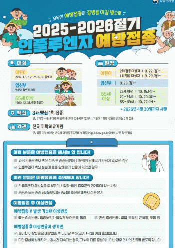 ¾î¸°ÀÌ(2012~ 2025³â 8¿ù Ãâ»ý)¿Í 65¼¼ ÀÌ»ó ¾î¸£½Å(1960³â ÀÌÀü Ãâ»ý), Àӽźδ 25- 26Àý±â µ¶°¨ ±¹°¡¿¹¹æÁ¢Á¾ ¹«·á ´ë»óÀÚÀ̸ç, õ¾È½Ã¹Î °¡¿îµ¥ 60~ 64¼¼(1961~ 1965³â), ±âÃÊ»ýȰ¼ö±ÞÀÚ, Àå¾Ö Á¤µµ°¡ ½ÉÇÑ Àå¾ÖÀÎ, ±¹°¡À¯°øÀÚµµ ³»³â 4¿ù 30ÀϱîÁö ¹«·á·Î Á¢Á¾ÀÌ °¡´ÉÇÏ´Ù.