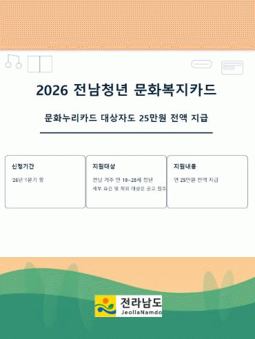 2025³â »ç¾÷¿¡´Â 8¿ù±îÁö Ãß°¡ Á¢¼ö¸¦ ÅëÇØ 9¸¸¿© ¸íÀÌ ÇýÅÃÀ» ¹Þ¾Ò°í, 2026³â »ó¹Ý±âºÎÅÍ Àü³²Ã»³â ¹®Èº¹ÁöÄ«µå ½ÅûÀÚ¸¦ ¸ðÁýÇÒ ¿¹Á¤ÀÌ´Ù.