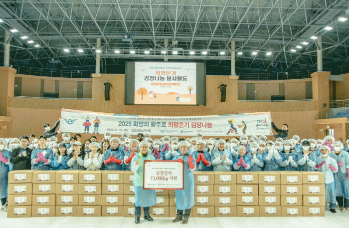 À̳¯ Âü¿©ÀÚµéÀº ÃÑ 13,000kgÀÇ ±èÀå±èÄ¡¸¦ ´ã°¬À¸¸ç, À̳¯ ´ã±Ù ±èÀå±èÄ¡´Â ÀÎõ±¤¿ª½Ã ¹× 10°³ ±º¡¤±¸ ÀÚ¿øºÀ»ç¼¾Å͸¦ ÅëÇØ Àú¼ÒµæÃþ, µ¶°Å³ëÀÎ, ÇѺθ𠰡Á¤ µî Áö¿ª»çȸ ¼Ò¿Ü°èÃþ 1,700 °¡±¸¿¡ ¼øÂ÷ÀûÀ¸·Î ¹è¼ÛµÉ ¿¹Á¤ÀÌ´Ù.