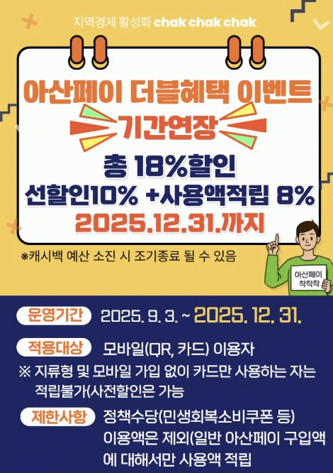 ¾Æ»ê½Ã´Â ÇàÁ¤¾ÈÀüºÎ¿ÍÀÇ ÇùÀǸ¦ ÅëÇØ ´çÃÊ 11¿ù ¸» Á¾·á ¿¹Á¤À̾ú´ø 18% ÇÒÀÎ À̺¥Æ®¸¦ 12¿ù 31ÀϱîÁö ¿¬ÀåÇØ ¿¬¸»±îÁö Áö¿ª ³» ¼Òºñ ÃËÁø°ú ¼Ò»ó°øÀÎ ¸ÅÃâ ȸº¹À» µµ¸ðÇϰí ÀÖ´Ù.