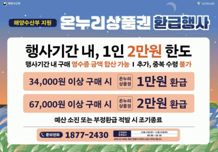 ¼ö»ê¹°À» ±¸¸ÅÇÑ ¼ÒºñÀÚ ´ë»óÀ¸·Î ±¸¸Å ±Ý¾×ÀÇ ÃÖ´ë 30%¸¦ ¿Â´©¸®»óǰ±ÇÀ¸·Î ȯ±ÞÇÑ´Ù.