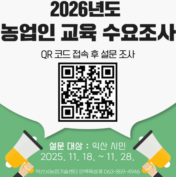ÀÍ»ê½Ã´Â ³ó¾÷ÀδëÇÐ, »õÇØ³ó¾÷Àνǿ뱳À°, ǰ¸ñ±³À°, Á¤º¸È±³À° µî 4°³ ºÐ¾ß¸¦ ´ë»óÀ¸·Î ±³À° ¼ö¿ä Á¶»ç¸¦ ¿À´Â 28ÀϱîÁö ÁøÇàÇÑ´Ù°í 19ÀÏ ¹àÇû´Ù.
