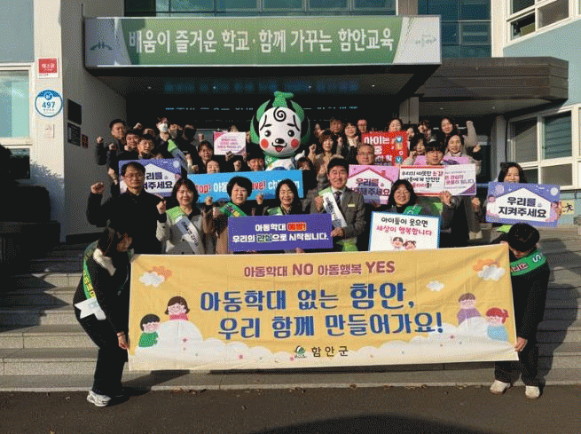 ÇԾȱº°ú °æ»ó³²µµ¾Æµ¿º¸È£Àü¹®±â°ü, ÇԾȱ³À°Áö¿øÃ»ÀÌ ÇÔ²² Âü¿©ÇØ Ãâ±ÙÇÏ´Â Á÷¿øµé¿¡°Ô È«º¸¹°À» ¹èºÎÇÏ¸ç ¾Æµ¿ÇÐ´ë ¿¹¹æÀ» ¾Ë¸®´Â ÇÕµ¿ È«º¸ Ȱµ¿À» ÆîÃÆ´Ù.