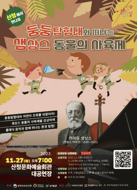 °ø¿¬Àº ÇÁ¶û½º ÀÛ°î°¡ Ä«¹ÌÀ¯ »ý»ó½º(Camille Saint-Saens)ÀÇ ´ëÇ¥ÀÛ ¡®µ¿¹°ÀÇ »çÀ°Á¦¡¯¸¦ ¾î¸°ÀÌ ´«³ôÀÌ¿¡ ¸ÂÃá Ŭ·¡½Ä À½¾Ç±ØÀ¸·Î À籸¼ºÇØ ¼±º¸ÀδÙ.