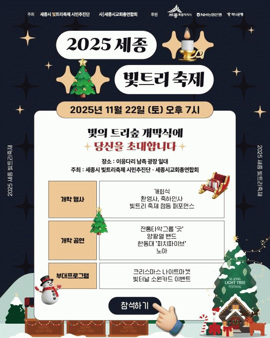 À̹ø ¼¼Á¾½Ã ºûÆ®¸®ÃàÁ¦´Â ½Ã¹ÎÃßÁø´Ü°ú ¼¼Á¾½Ã±³È¸ÃÑ¿¬ÇÕȸ°¡ °øµ¿ ÁÖÃÖ·Î ÁøÇàµÇ¸ç ´ëÇ¥ÀûÀÎ ½Ã¹Î Âü¿©Çü °Ü¿ïÃàÁ¦·Î ÁøÇàµÉ ¿¹Á¤ÀÌ´Ù.